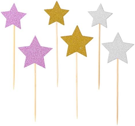 定番の人気シリーズpoint ポイント 入荷 Bestonzon 36ピースラブリースターケーキトッパーキラキラ 星ケーキピックカップケーキの装飾パーティー用品用結婚式誕生日祭り
